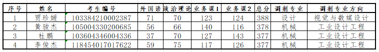 因部分考生放弃调剂复试,递补考生名单如下: