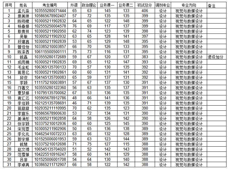2025年硕士研究生招生复试名单(调剂)